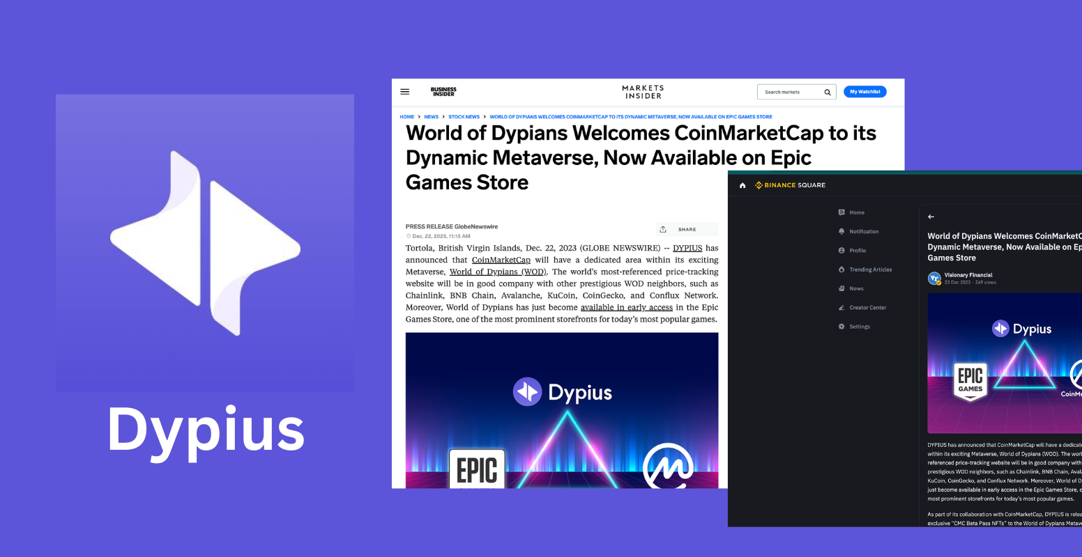 Dypius (World of Dypians) is a GameFi and Metaverse project creating an immersive Web3 universe that combines gaming, NFTs, and DeFi integrations. As part of its growth strategy, Dypius aimed to achieve global awareness, SEO ranking improvements, and authoritative media coverage during its high-profile launches, including its availability on the Epic Games Store and collaborations with CoinMarketCap.